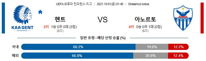 [UECL컨퍼런스리그] 10월1일 KAA 헨트 vs 아노르토시스 파마구스타 FC