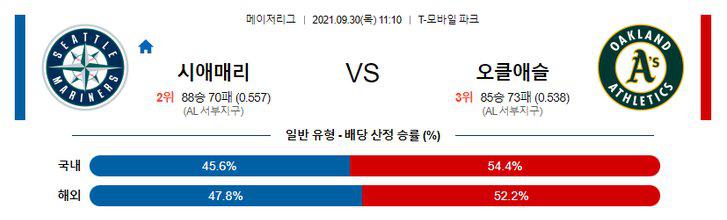 【MLB】 9월30일 시애틀 vs 오클랜드