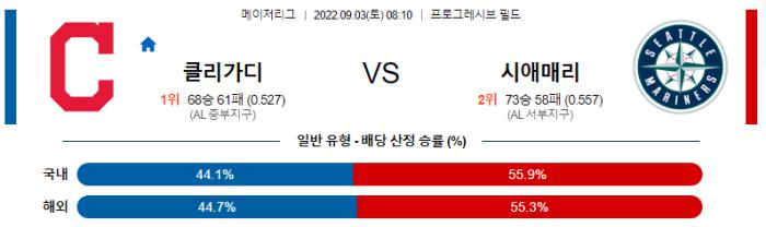 9월 3일 08:10 MLB 클리블랜드 : 시애틀 MLB분석