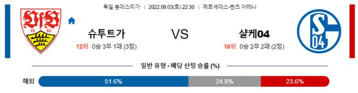 독일 분데스리가 9월 3일 22:30 VfB 슈투트가르트 : FC 샬케 04
