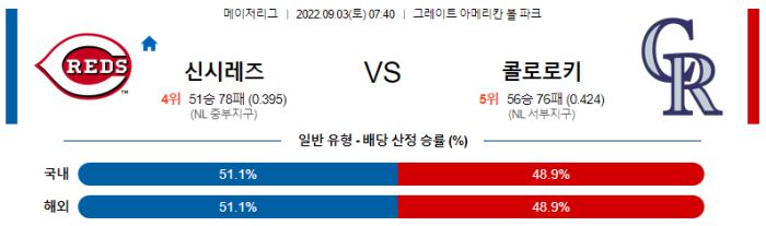 9월 3일 07:40 MLB 신시내티 : 콜로라도 MLB분석