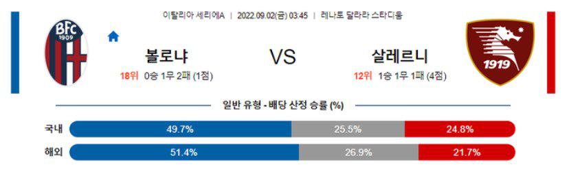 열람중 【세리에A】 9월2일 볼로냐 vs 살레르니타나 2022.09.01 281