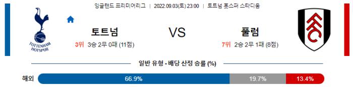 잉글랜드 프리미어리그 9월 3일 23:00 토트넘 홋스퍼 : 풀럼