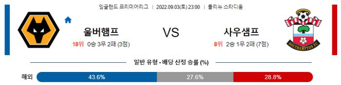 잉글랜드 프리미어리그 9월 3일 23:00 울버햄튼 : 사우샘프턴