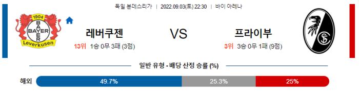 독일 분데스리가 9월 3일 22:30 레버쿠젠 : SC 프라이부르크