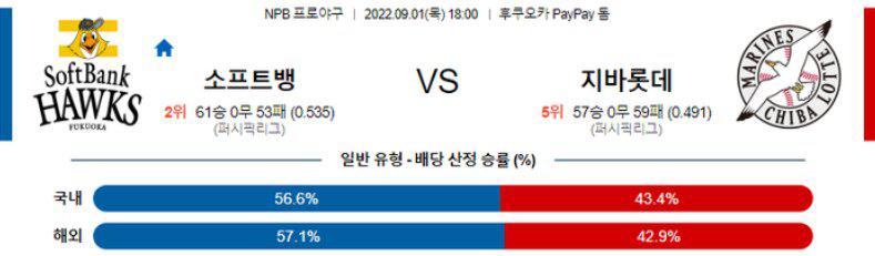 열람중 [NPB] 9월1일 소프트뱅크 vs 지바롯데 2022.09.01 270