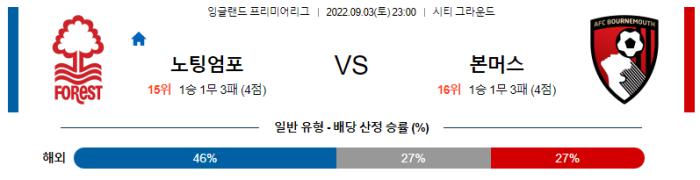잉글랜드 프리미어리그 9월 3일 23:00 노팅엄 포레스트 : 본머스
