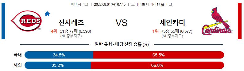 9월 1일 07:40 MLB 신시내티 : 세인트루이스 MLB분석