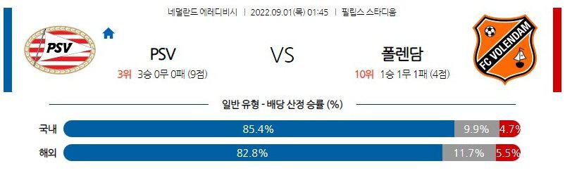 【Eredevisie】 9월1일 PSV아인트호벤 vs 폴렌담