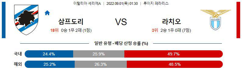 열람중 【세리에A】 9월1일 삼프도리아 vs 라치오 2022.08.31 295