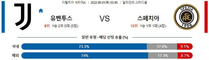 【세리에A】 9월1일 유벤투스 vs 스페치아