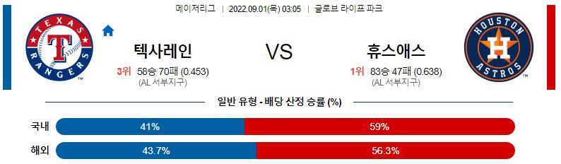 9월 1일 03:05 MLB 텍사스 : 휴스턴 MLB분석