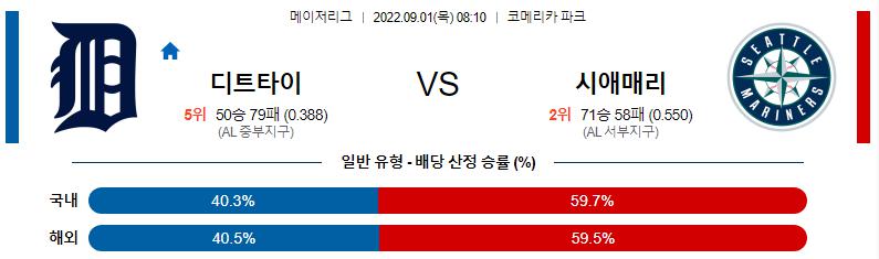 9월 1일 08:10 MLB 디트로이트 : 시애틀 MLB분석