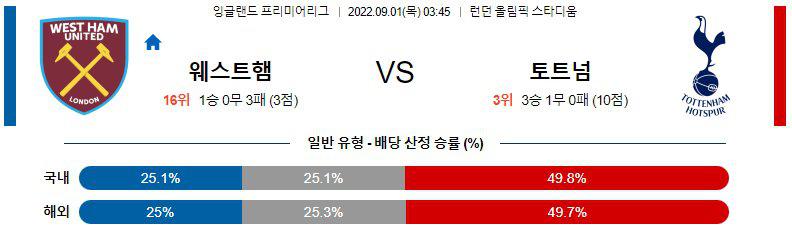 【EPL】 9월1일 웨스트햄 vs 토트넘