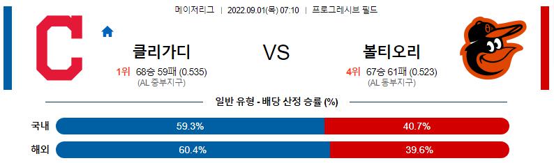 9월 1일 07:10 MLB 클리블랜드 : 볼티모어 MLB분석