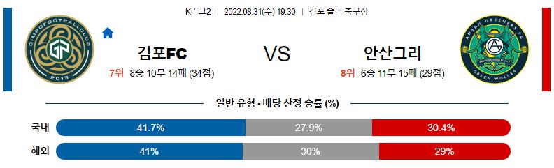 K리그2 8월 31일 19:30 김포시민축구단 : 안산 그리너스 FC