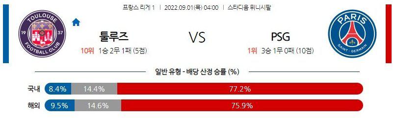 【리그앙】 9월1일 툴루즈 vs 파리생제르망