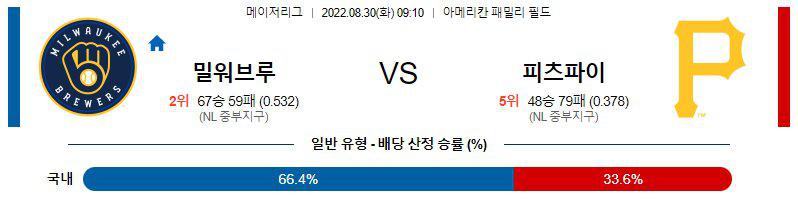 【MLB】 8월30일 밀워키 vs 피츠버그