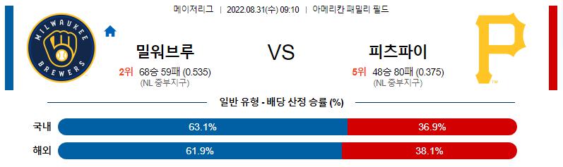 8월 31일 09:10 MLB 밀워키 : 피츠버그 MLB분석