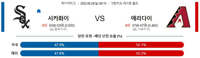 8월 28일 08:10 MLB 화이트삭스 : 애리조나 MLB분석