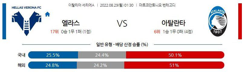 【세리에A】 8월29일 헬라스베로나 vs 아탈란타