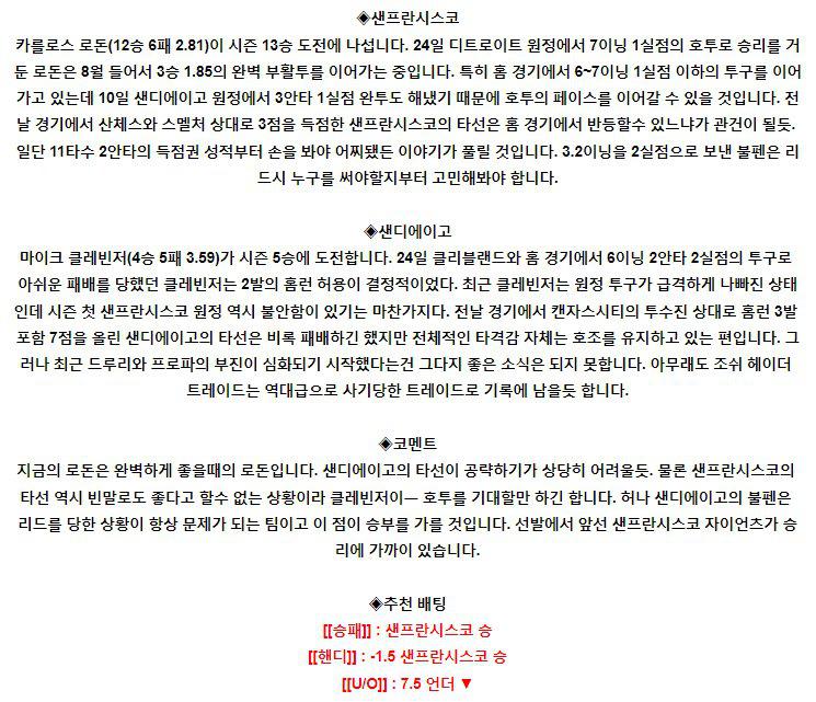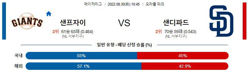 【MLB】 8월30일 샌프란시스코 vs 샌디에고