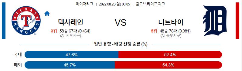 8월 28일 08:05 MLB 텍사스 : 디트로이트 MLB분석