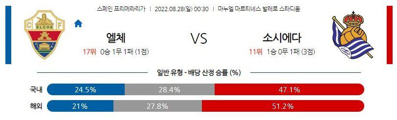 【Laliga】 8월28일 엘체 vs 레알소시에다드