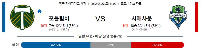 미국 MLS 8월 27일 11:00 포틀랜드 팀버스 : 시애틀 사운더스 FC