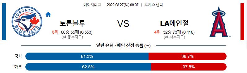 8월 27일 08:07 MLB 토론토 : LA에인절스 MLB분석