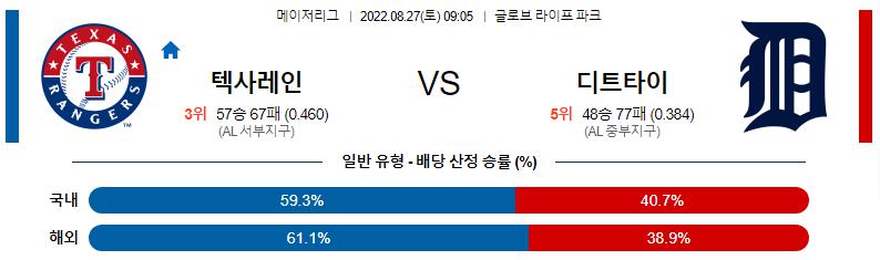 6485 8월 28일 08:05 MLB 텍사스 : 디트로이트 MLB분석 2022.08.27 231