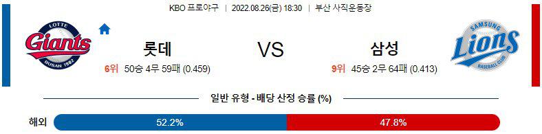 8월26일 롯데 자이언츠 삼성 라이온즈 KBO 한국 프로야구 경기분석을 시작하겠습니다. 이번경기는 오후 6시 30분에 시작이 되는 경기로서, 롯데 자이언츠의 홈경기로 진행이 되는 경기입니다. 롯데는 6위를 기록중이고 삼성은 9위를 기록중인데 롯데 자이언츠 삼성 라이온즈 두 팀의 최근 컨디션은 롯데가 우위인 상황입니다.