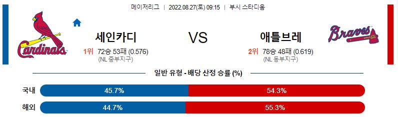8월 27일 09:15 MLB St.루이스 : 애틀랜타 MLB분석
