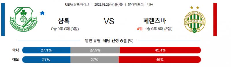 UEFA 유로파리그 8월 26일 04:00 섐록 로버스 FC : 페렌츠바로시 TC