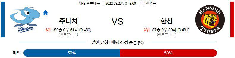 【NPB】 8월26일 주니치 vs 한신