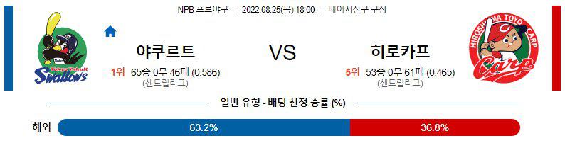 【NPB】 8월25일 야쿠르트 vs 히로시마