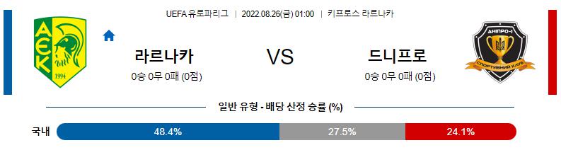 UEFA 유로파리그 8월 26일 00:59 AEK 라르나카 : SC 드니프로-1