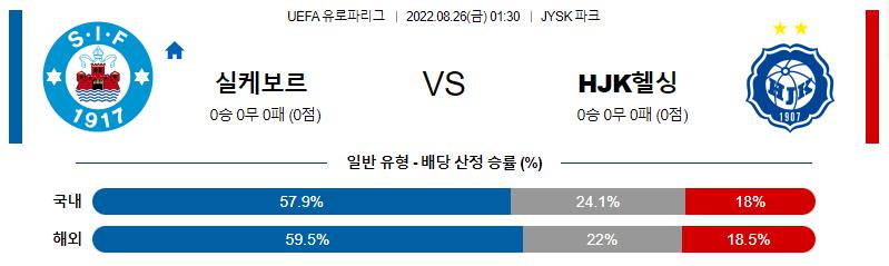 UEFA 유로파리그 8월 26일 01:30 실케보르 IF : HJK 헬싱키