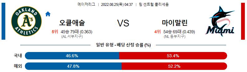 8월 25일 04:37 MLB 오클랜드 : 마이애미 MLB분석