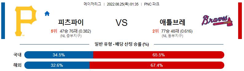 8월 25일 01:35 MLB 피츠버그 : 애틀랜타 MLB분석