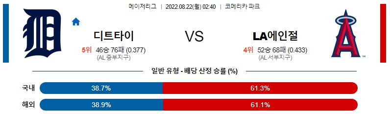 8월 22일 02:40 MLB 디트로이트 : LA에인절스