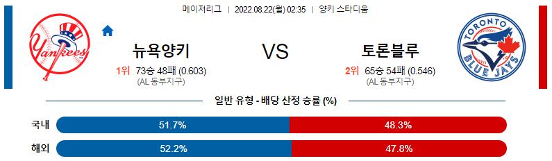 8월 22일 02:35 MLB 뉴욕 양키스 : 토론토