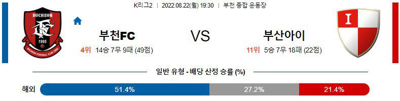 【K리그2】 8월22일 부천FC vs 부산아이파크 축구분석
