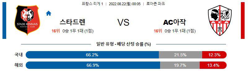 【리그앙】 8월22일 스타드렌 vs AC아작시오