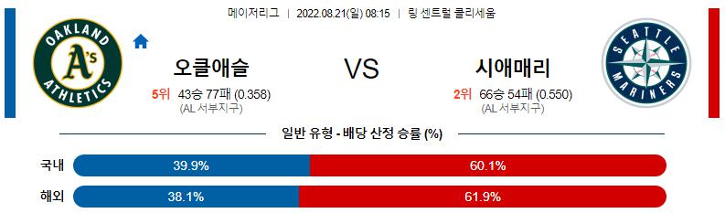 8월 21일 08:15 MLB 오클랜드 : 시애틀 MLB분석