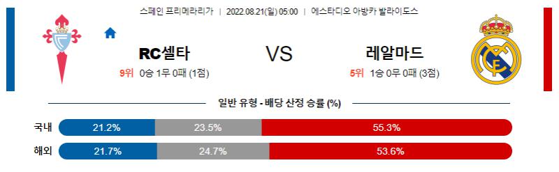 스페인 프리메라리가 8월 21일 셀타 비고 : 레알 마드리드