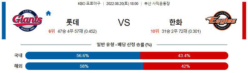 【KBO】 8월20일 롯데 vs 한화