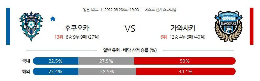 【J리그】 8월20일 후쿠오카 vs 가와사키