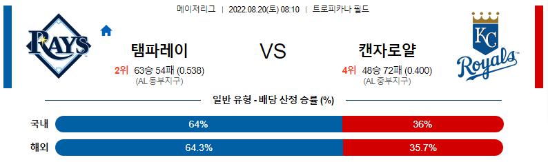 8월 20일 08:10 MLB 탬파베이 : 캔자스시티 MLB분석