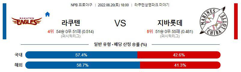 【NPB】 8월20일 라쿠텐 vs 지바롯데